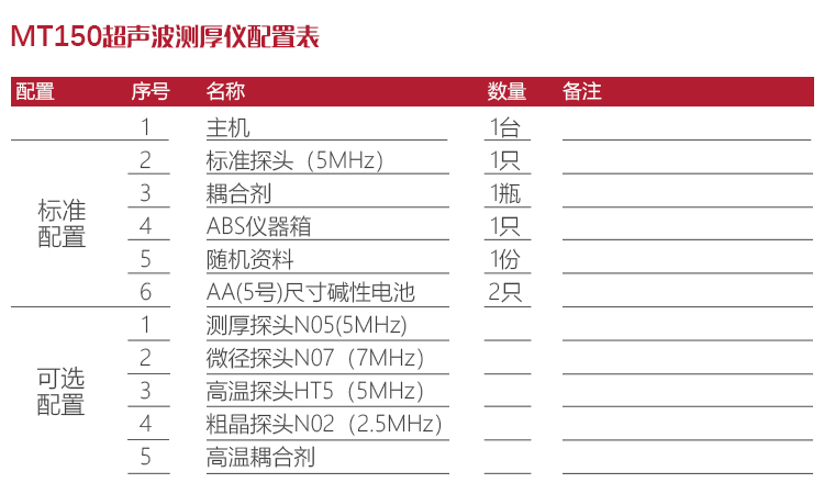 | 探頭直徑 | 測厚探頭N05直徑10MM、微晶探頭N07直徑6MM、高溫探頭HT5直徑12MM、粗晶探頭N02直徑12MM |