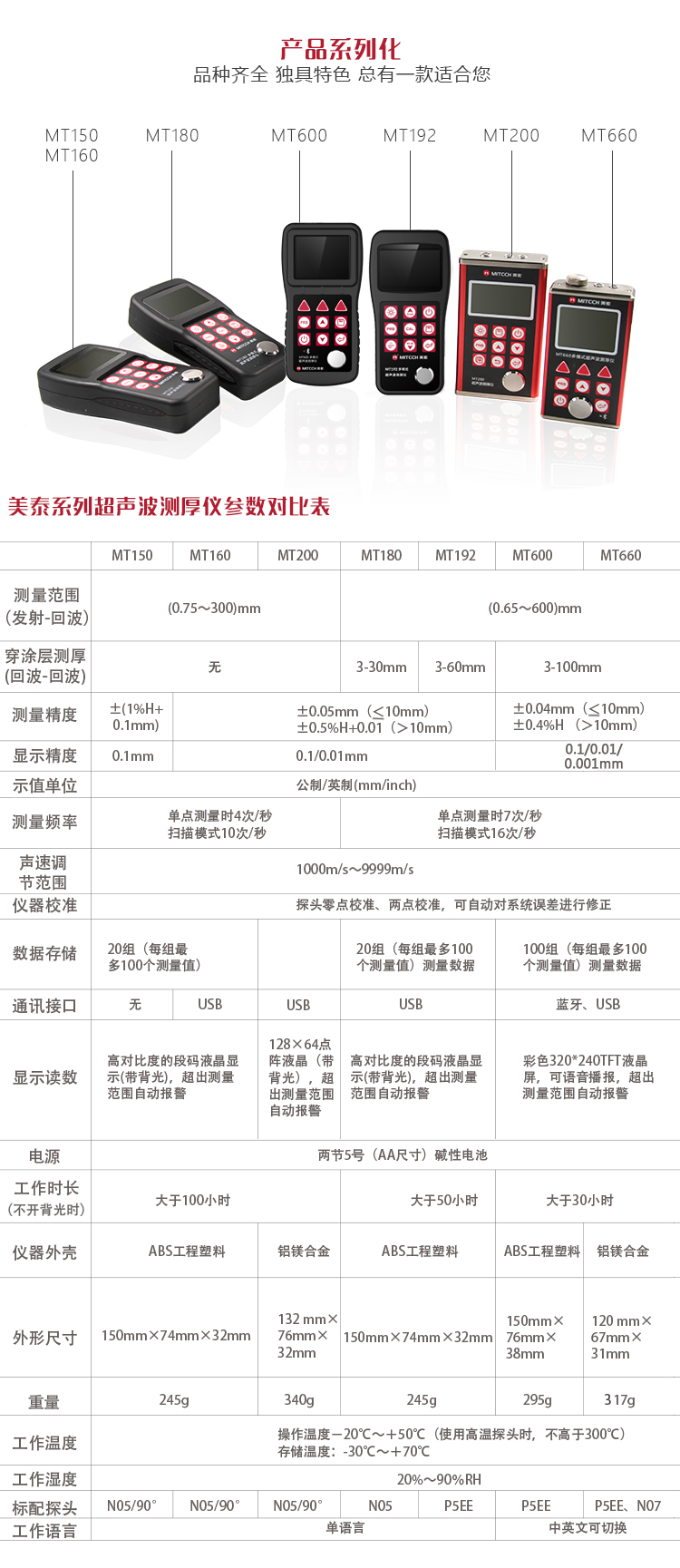 | 美泰系列超聲波測厚儀,均采用低功耗設(shè)計理念,超長待機,MT150/MT160/MT200/MT180/MT192/MT280/MT600/MT660均由兩節(jié)AA五號電池供電、更換方便。 | |