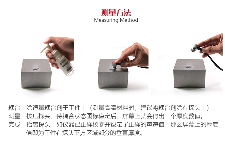 若被測體表面有大量耦合劑時,當(dāng)探頭離開被測體表面時,耦合劑會引起誤測。因此測量結(jié)束時,應(yīng)迅速將探頭移開被測體表面。