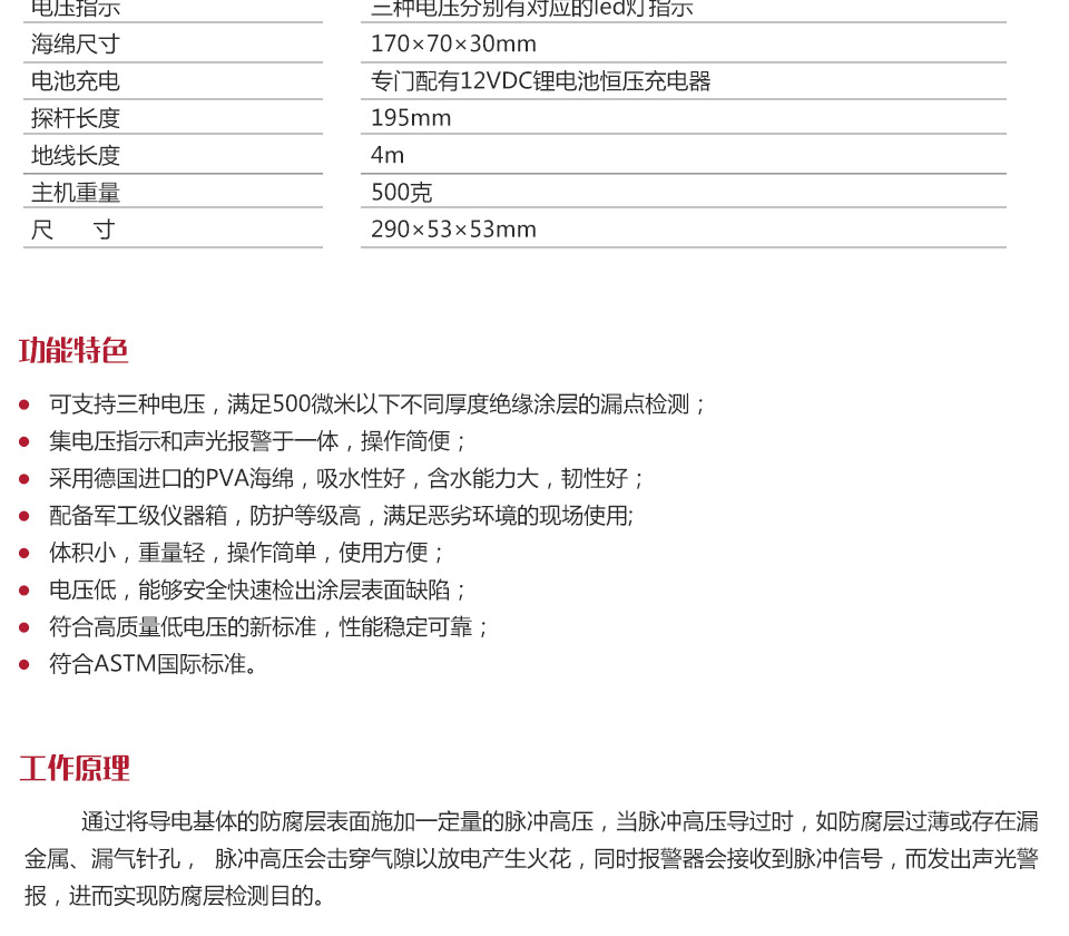 ?電壓低,能夠安全快速檢出涂層表面缺陷;