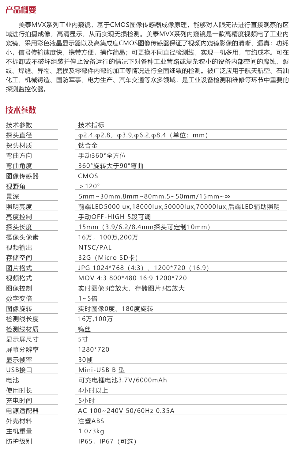 | 探頭直徑 | φ2.4,φ2.8,φ3.9,φ6.2,φ8.4(單位:mm) |