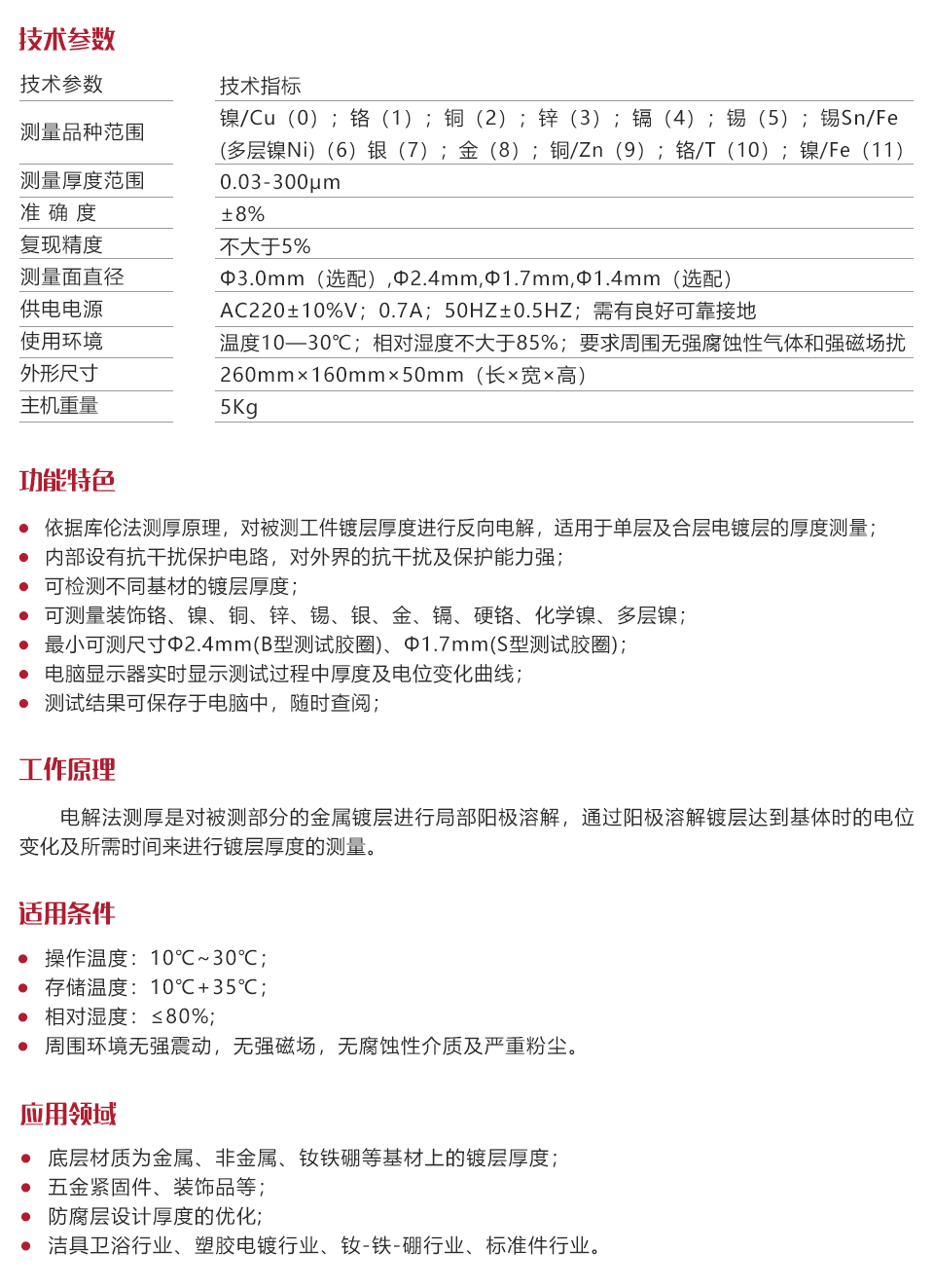 l 儀器的設計規定測量的鍍種必須是各種純金屬鍍層;