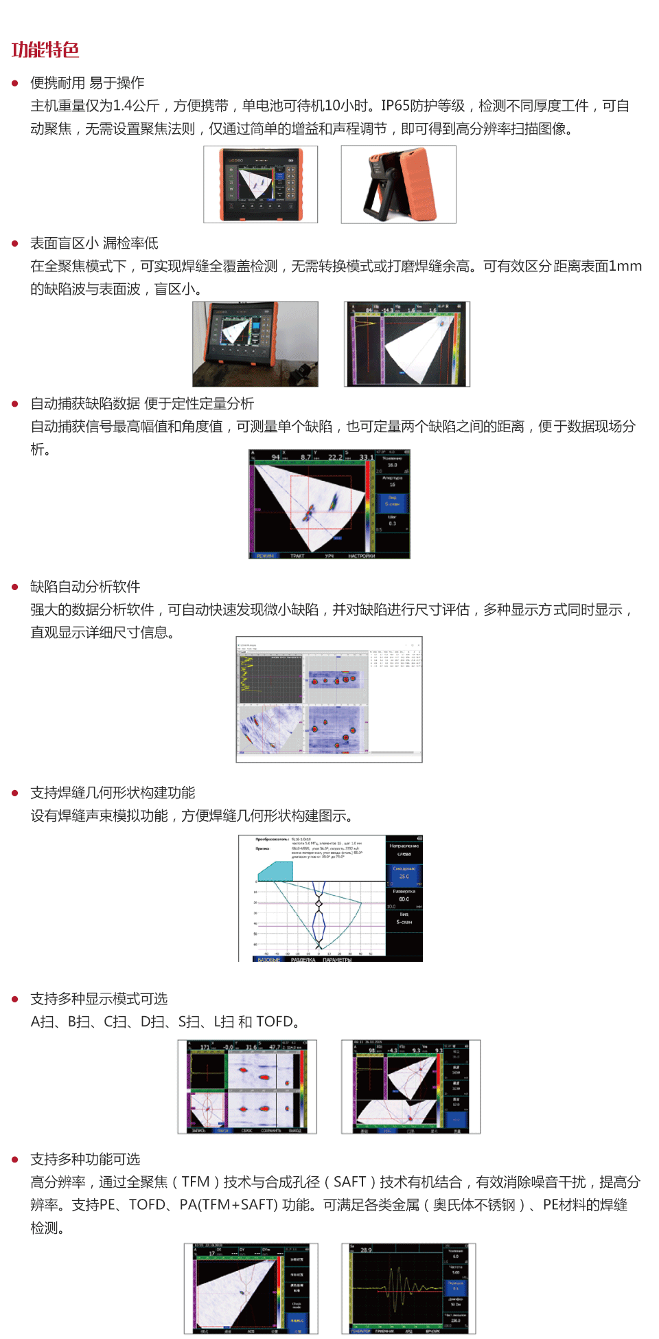 儀器特點?用于管道焊縫、PE管、小徑管、微小缺分析、近表面缺陷檢測;
