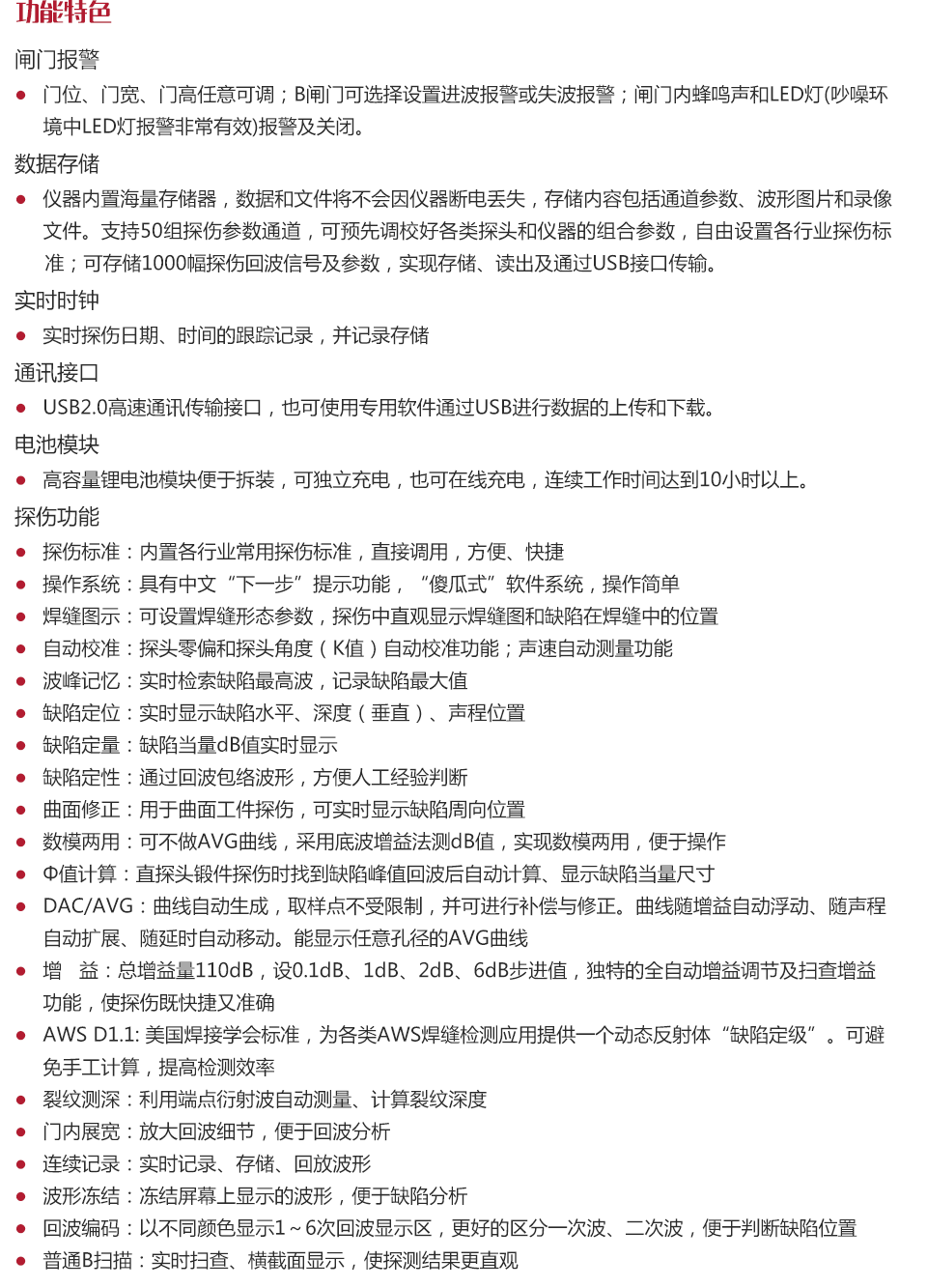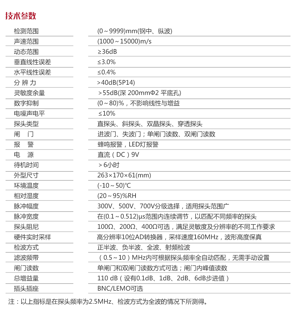 | 靈敏度余量 | >55dB(深200mmФ2平底孔) |