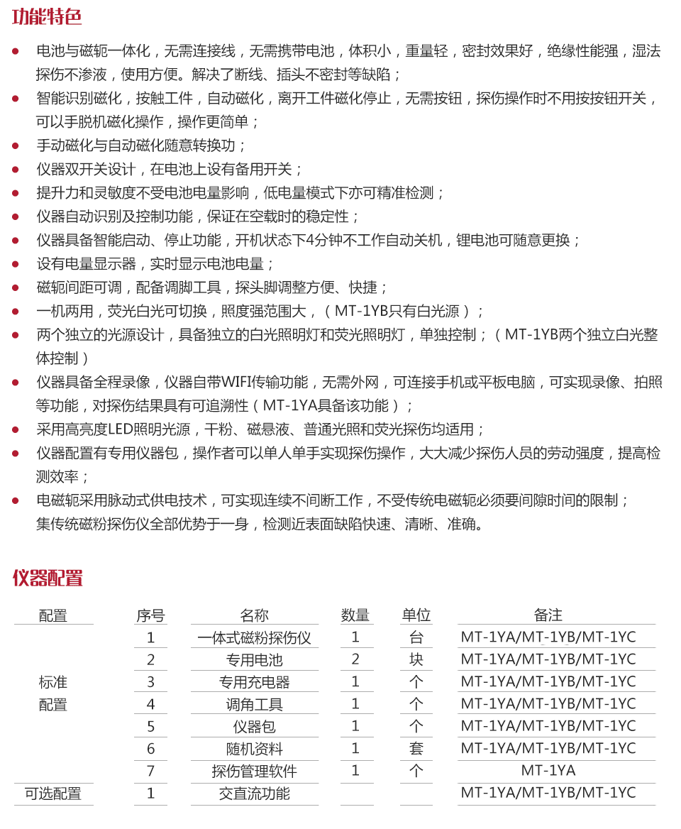 l 儀器具備全程錄像,儀器自帶WIFI傳輸功能,無需外網(wǎng),可連接手機(jī)或平板電腦,可實(shí)現(xiàn)錄像、拍照等功能,對(duì)探傷結(jié)果具有可追溯性(MT-1YA具備該功能);