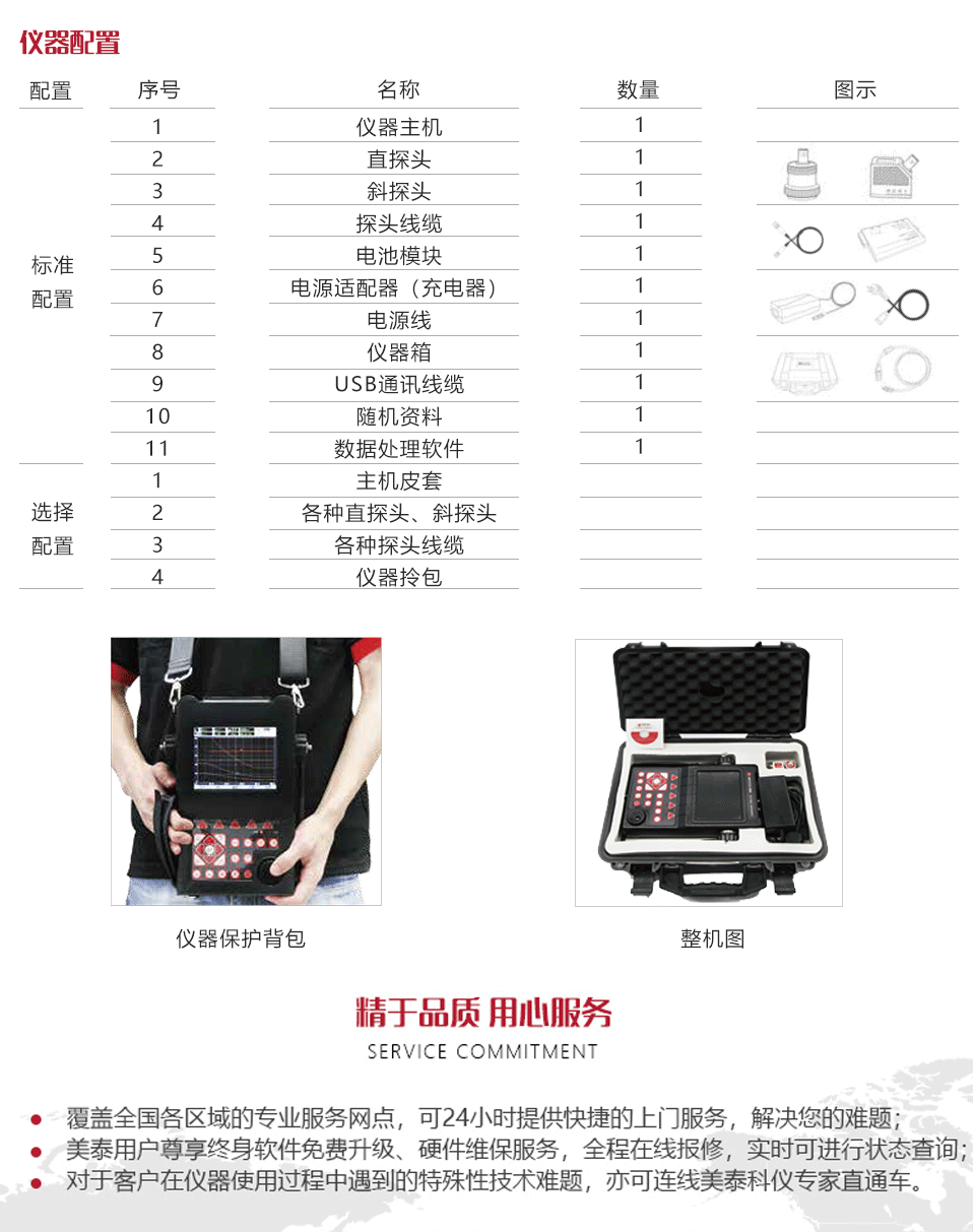 | 美泰超聲波探傷儀附有專用的隨機裝箱資料。包括產品合格證、保修卡、產品說明書、裝箱清單。隨機資料采用專用的銅版紙印制,說明書圖文設計,美觀、易懂、便于長久保存。注:美泰品牌系列產品的隨機資料均可登陸www.gcuvbwo08.cn下載電子版。 | |