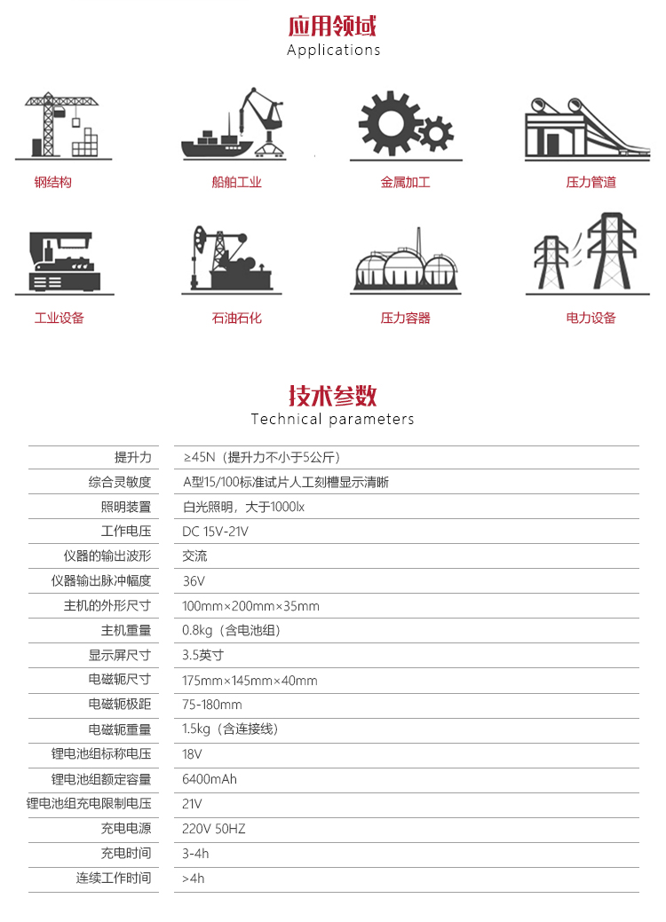 | 電磁軛尺寸 | 175mm×145mm×40mm |