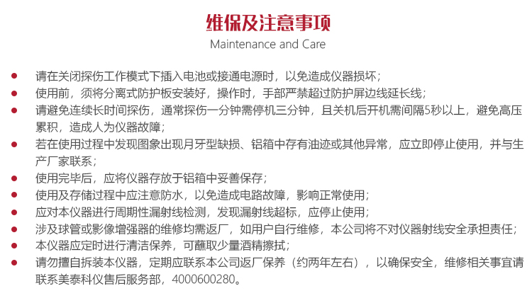 涉及球管或影像增強器的維修均需返廠,如用戶自行維修,本公司將不對儀器射線安全承擔責任;