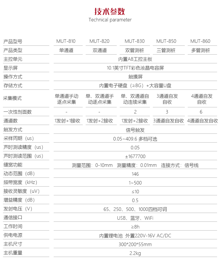 | 產品型號 | MUT-810 MUT-820 MUT-830 MUT-850 MUT-860 |