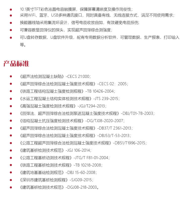 儀器特點l 廣泛應用于混凝土、巖石、陶瓷、石墨、塑料等非金屬材料和構件的無損檢測;