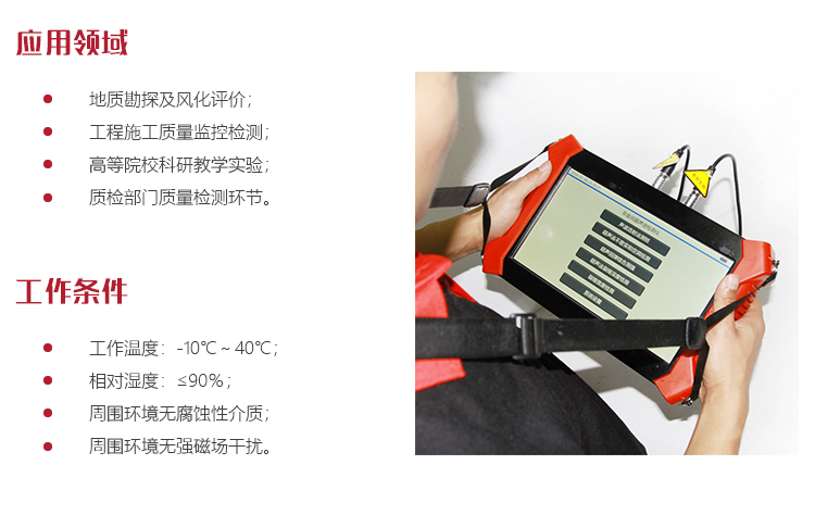 功能用途l 廣泛應用于混凝土、巖石、陶瓷、石墨、塑料等非金屬材料和構件的無損檢測;