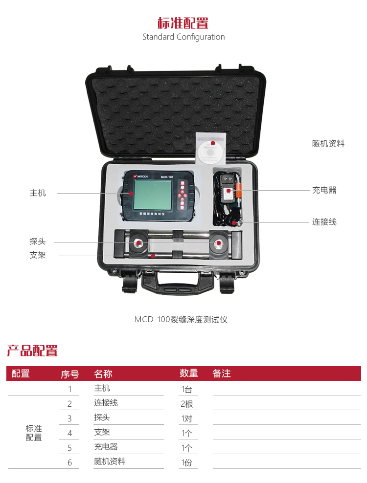 工作原理美泰MCC-800無線型裂縫綜合檢測儀,集裂縫測寬和測深的功能于一體,通過無線信號傳輸,可自動識別多種探頭,能夠快速無損檢測構件表面裂縫寬度及深度。其測量速度快、測量精度高、性能穩定可靠,可實現自動測量,自動判讀及存儲,被廣泛的應用于橋梁、隧道、塔、建筑物、混凝土構件、路面等領域的工程質量檢測,是保障生命財產安全必備的專業精密檢測儀器。